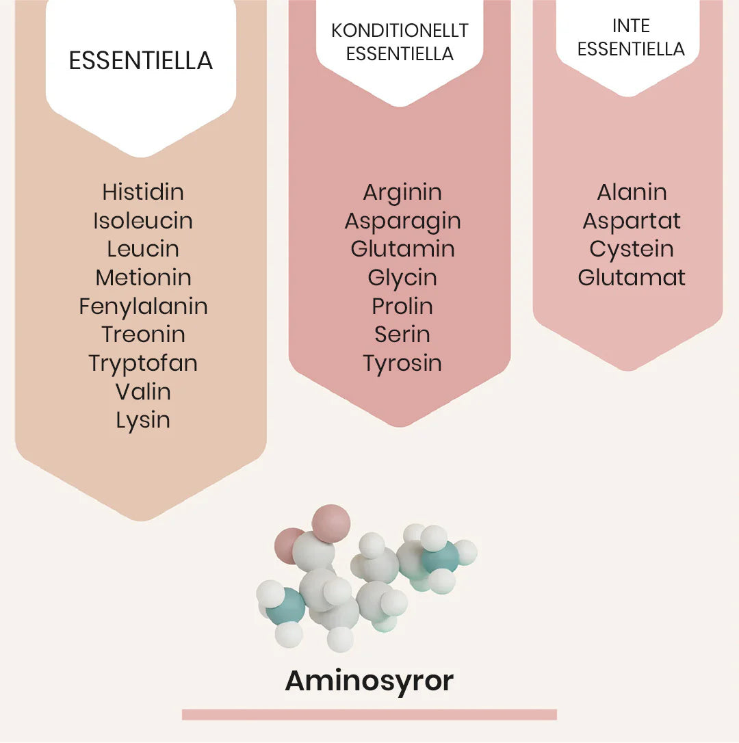 Av den anledningen är det extremt viktigt att välja ett tillskott som motsvarar det mänskliga aminomönstret. Det är också mycket bättre om kroppen själv kan bilda de icke-essentiella aminosyrorna, istället för att behöva få dem färdiga via tillskott.