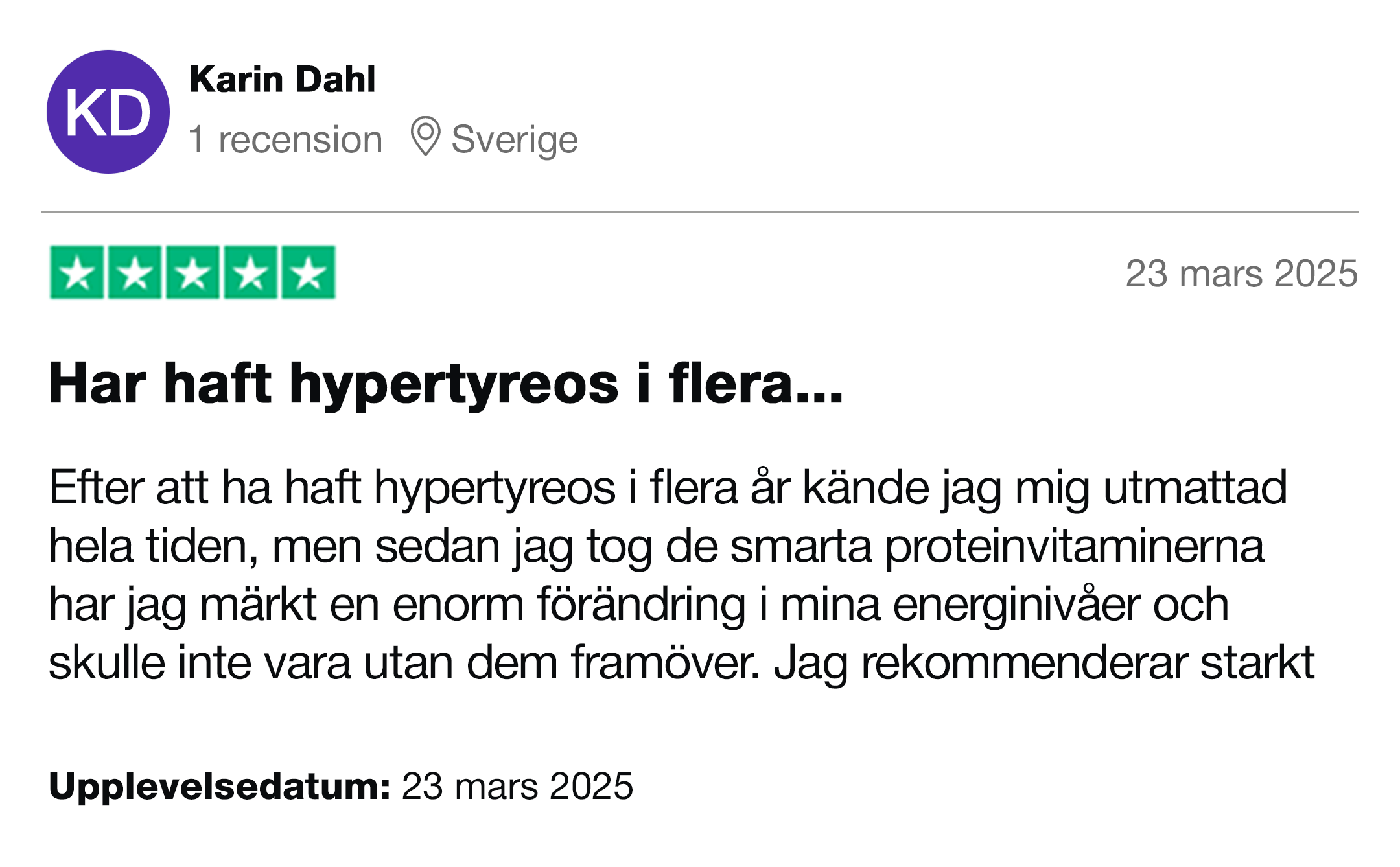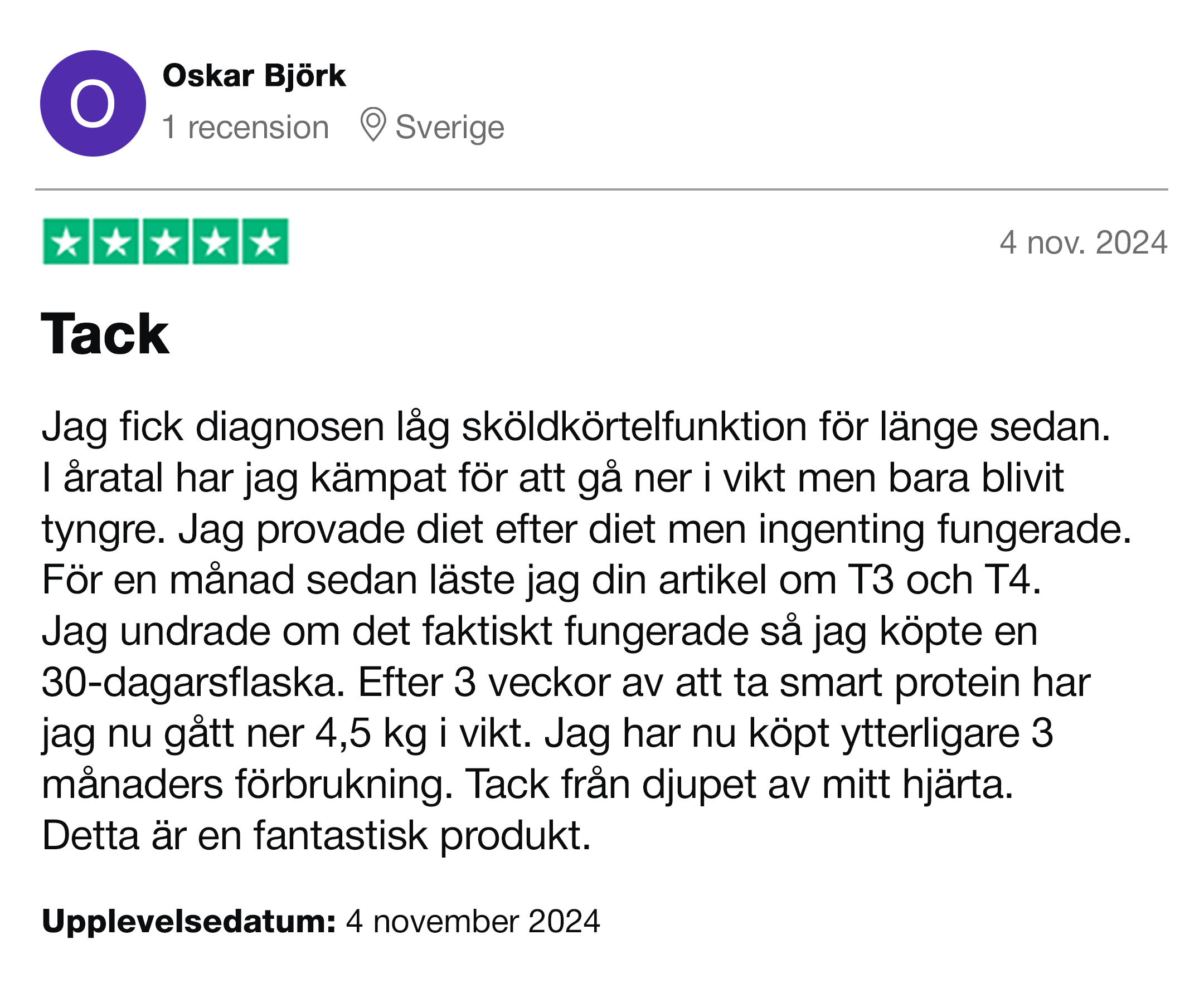 Jag är glad att jag upptäckte Smart Protein och rekommenderar det starkt till alla med hypotyreos.