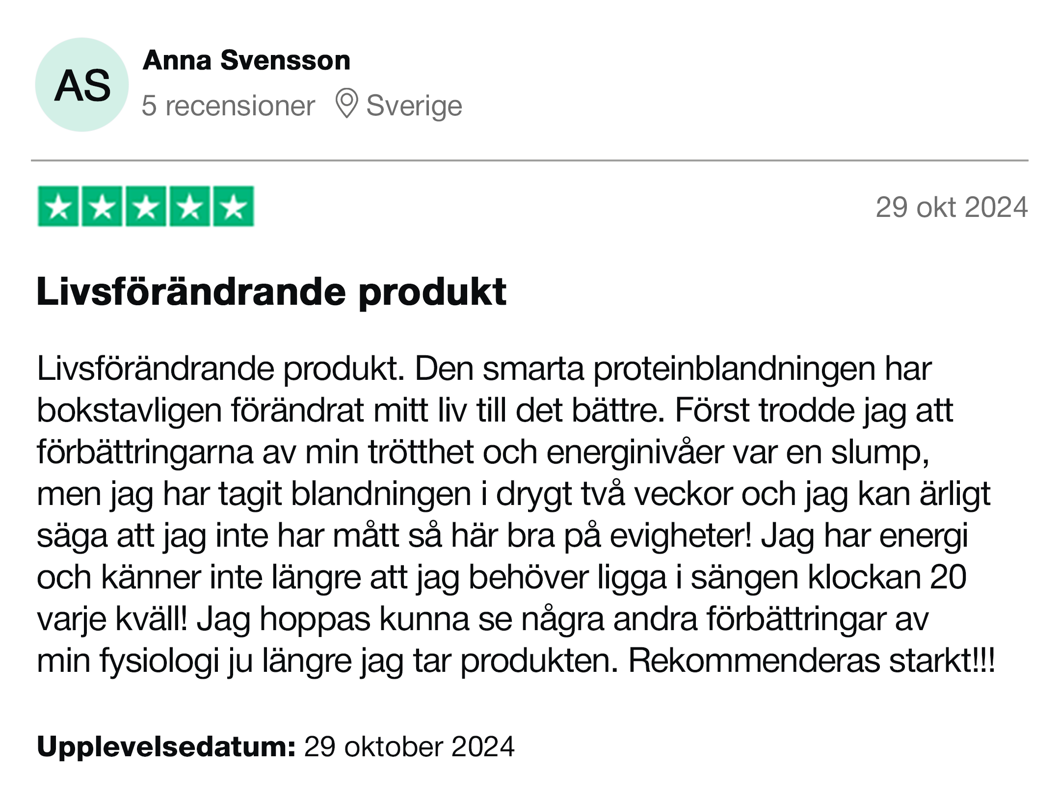 Sedan jag började med Smart Protein Blend har mitt liv vänts 180 grader. Ingen trötthet längre. Ingen utmattning.