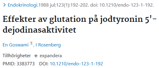 Effecten van glutathion op joodthyronine 5'-deiodinase-activiteit: https://pubmed.ncbi.nlm.nih.gov/3383773/
